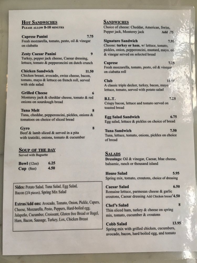 Avocado, Tomato, Onion, Pickles, Capers, Cheese, Mozzarella, Pesto, Pepperoncinis, Hard boiled egg, Jalapeños, Cucumber, Croissant, Gluten free Bread or Bagel, Ham, Bacon, Sausage, Turkey, Lox, Chicken Breast